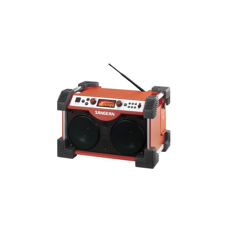 Sangean Fatbox Rugged Industrial AM/FM Radio. Rugged industrial grade AM/FM radio. Tough rollcage design can withstand falls from 6 feet high and survive up to 250 pounds of weight. High performance PLL AM/FM tuner and waterproof 6.5- inch speakers provide high-quality sound. While plugged in unit can recharge universal D-size Ni-MH batteries (not included) making it easy to take your tunes anywhere. Two auxiliary inputs for easy use with iPods CD players and other audio devices. Red.